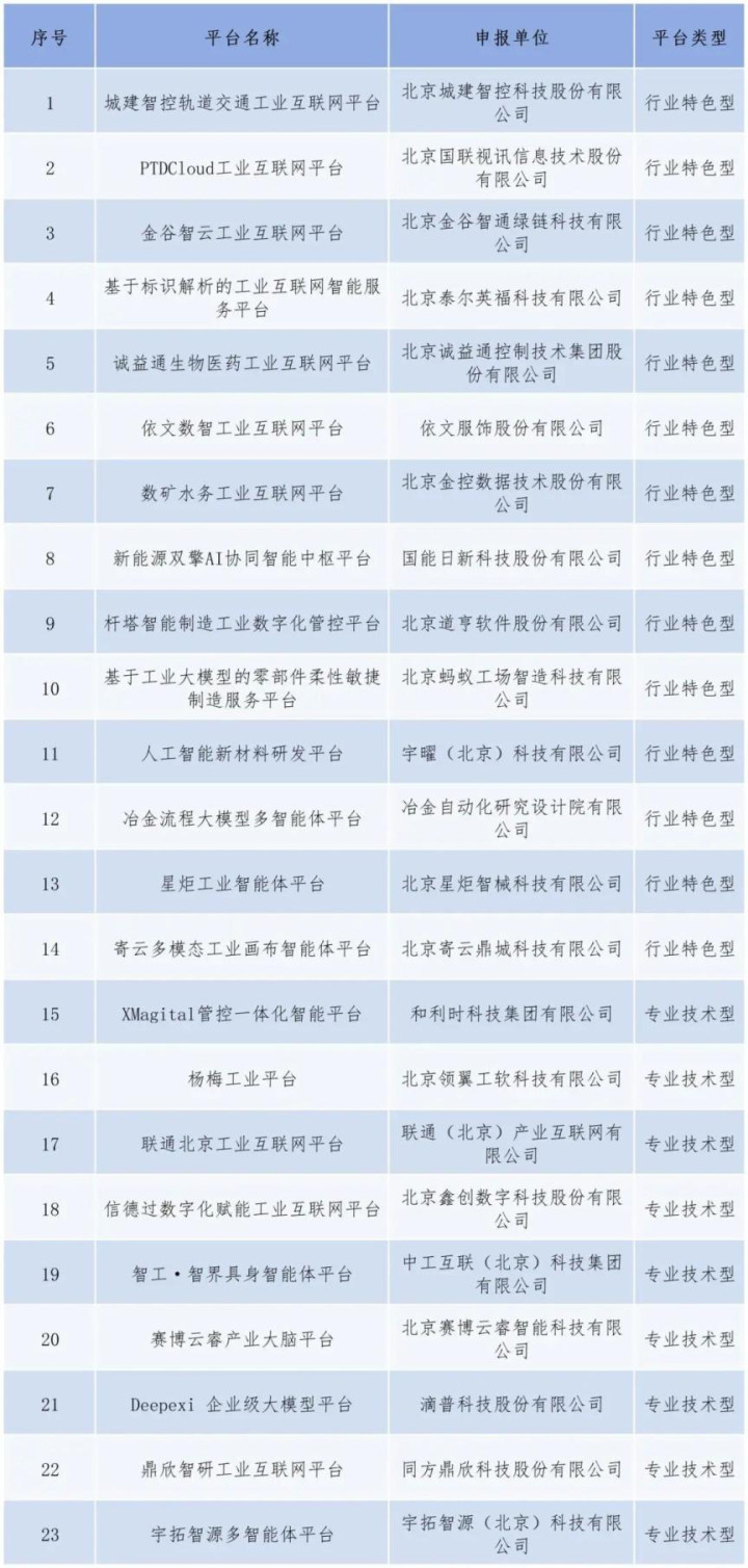 2025年北京市工业互联网平台名单